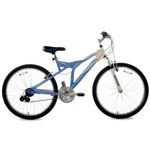 The 21-speed Shogun Rock Mountain Dual Suspension Ladies Mountain bike is ready to bomb any trail. Built around a hand crafted steel frame and a suspension fork, this is designed to handle big hits and come back for more. Alloy rims and a Shimano rear derailleur round out this powerful package. One-size.
